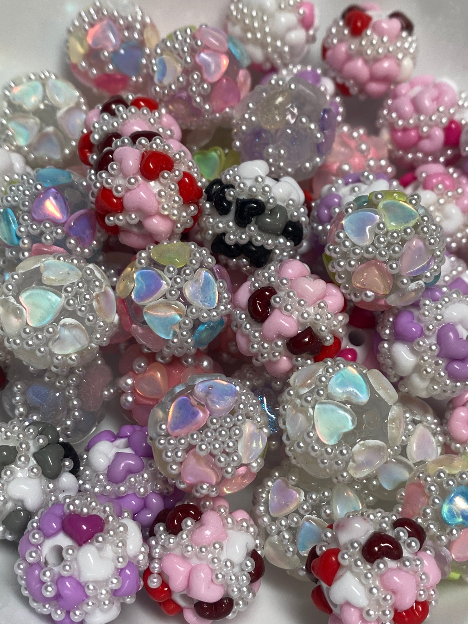 16mm special hand rolled hearts with pearl beads.