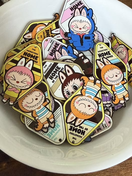 5.6cm double side with raised paint texture on one side Labubu hotel key design.
