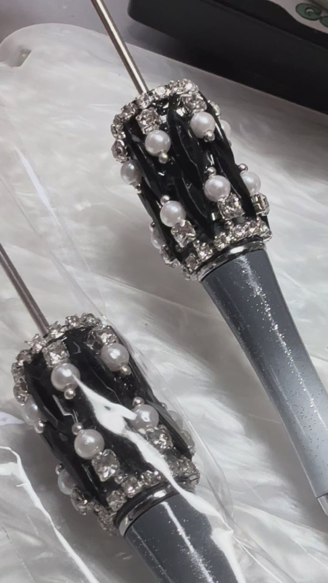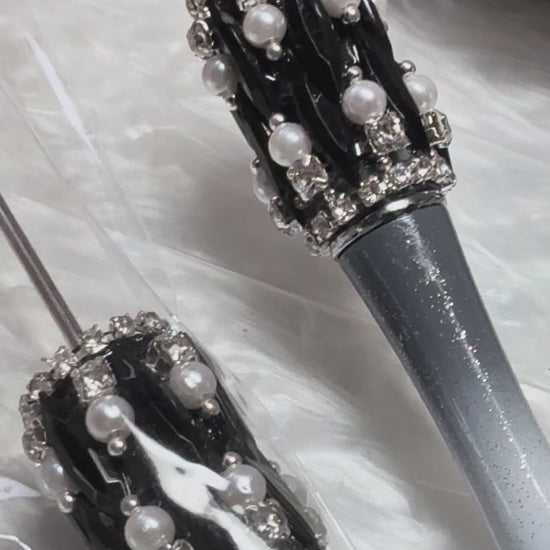 Highly decorated rhinestone, pearl and gem wrapped pens